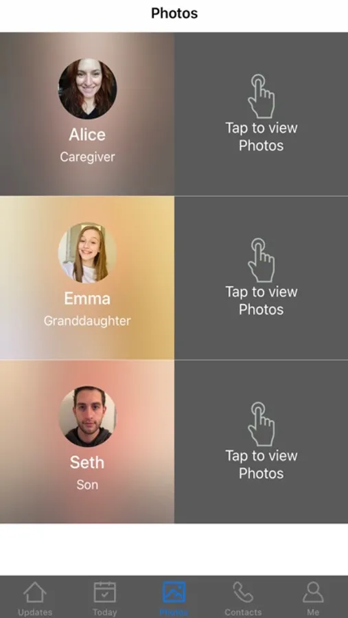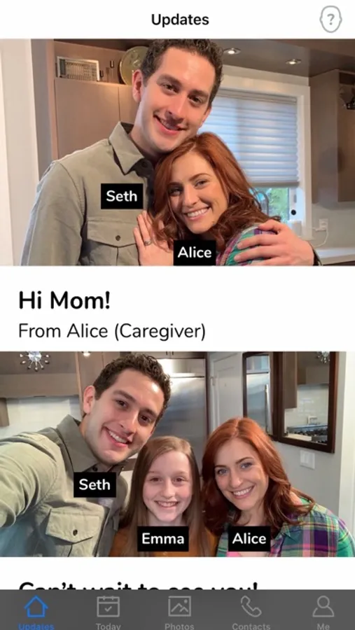 * Updates - Friends and family can use Timeless to share photos of events with the patient. The patient can see their name and relationship automatically tagged in the photos. Update helps patients stay engaged and connected with loved ones, and also helps them stimulate their memory. It can remind them of what family and friends look like using Artificial Intelligence based facial recognition technology.