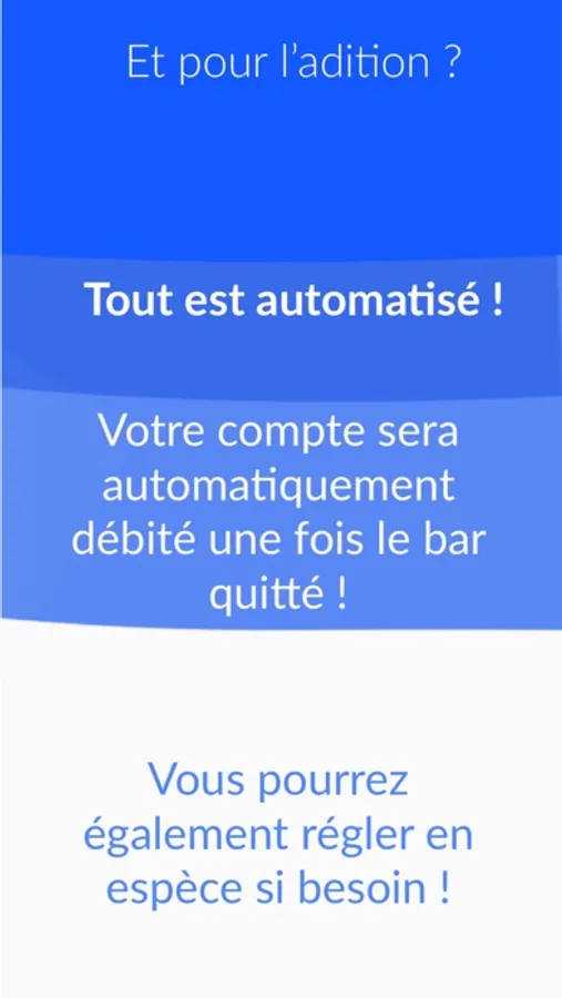 Le paiement est lui aussi totalement digitalisé et automatisé, plus de problèmes de partage d’addition quand on prend des verres avec 12 amis, plus de « bar-basket » et plus de problèmes de « on ne prend pas la carte en dessous de 30€ ».