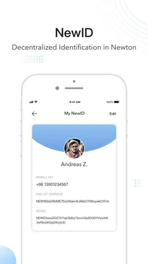 NewID: NewID, the decentralized identification in Newton Community Economy, is used to log in to Dapps and authorize use of information.