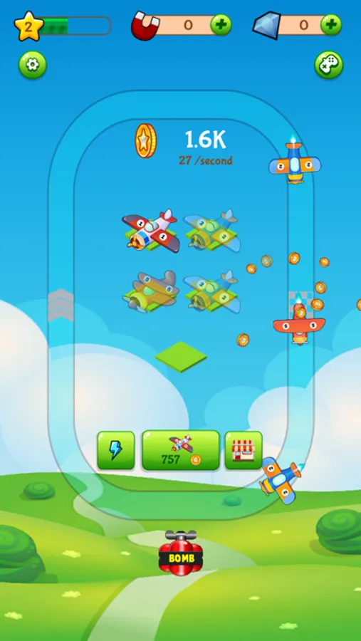 • Buy, merge and manage your planes so that you can make them fly to earn money!