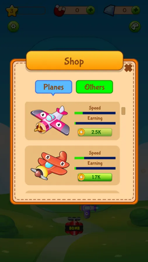 • Fortune Wheel to test your luck to win special gems to upgrade your planes.