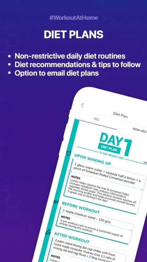 To aid your fitness and wellness journey, the App also offers non-restrictive daily diet plans, recommendations, and tips. The quick & healthy recipes are easy-to-make and appealing to the taste-buds, bringing a balance of delicious and nutritious.