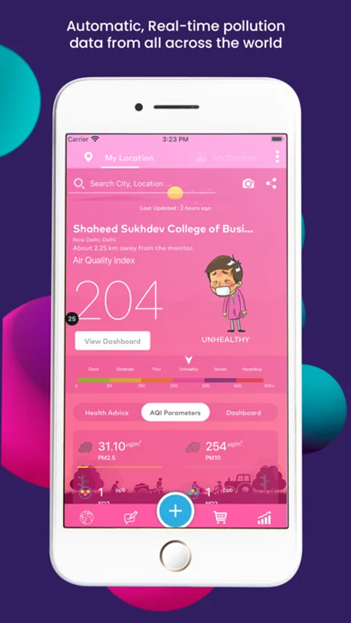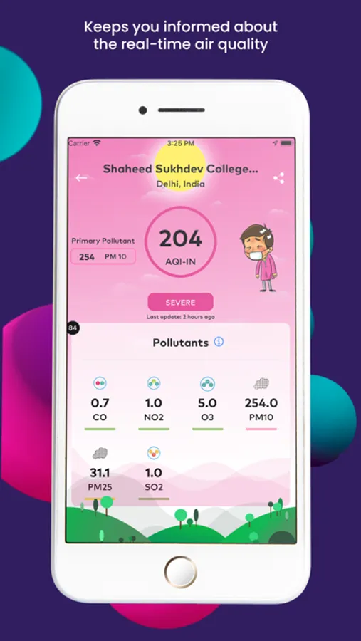 - Real-time & Historic Air Quality: Turn on your mobile phone GPS and know the current air polluiton leve of your location, city, state & country and take precautions accordingly. Get access to the ambient air quality data with many parameters like PM1, PM2.5, PM10, CO, SO2, NO2, noise, temperature, humidity, etc. With smart location services, you will see the AQI air quality data from the nearest monitor every time you open the app.