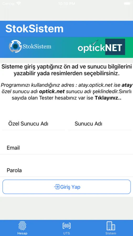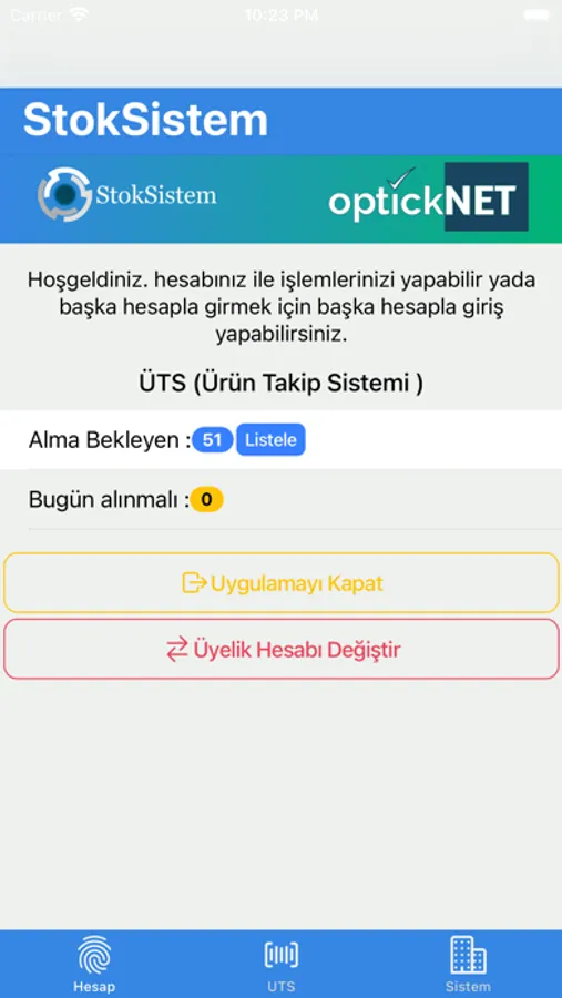 StokSistem Optik Firmaları için geliştirilmiş ÜTS `Ürün Takip Sistemi ` bildirimi uygulamasidir. Uygulama ile cihazınizin camerasi ile karekodlarinizi okur ve sistem üzerinden alma ve verme bildirimi yapabilir. Bu islemleri yapabilmek için StokSisitem veya OptickNet hesaplarından birine sahip olmanız ve ÜTS sisteminden alinmis Sistem Tokenine sahip olmalisiniz.