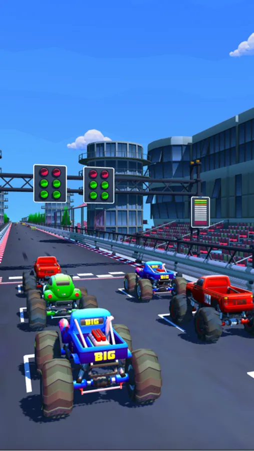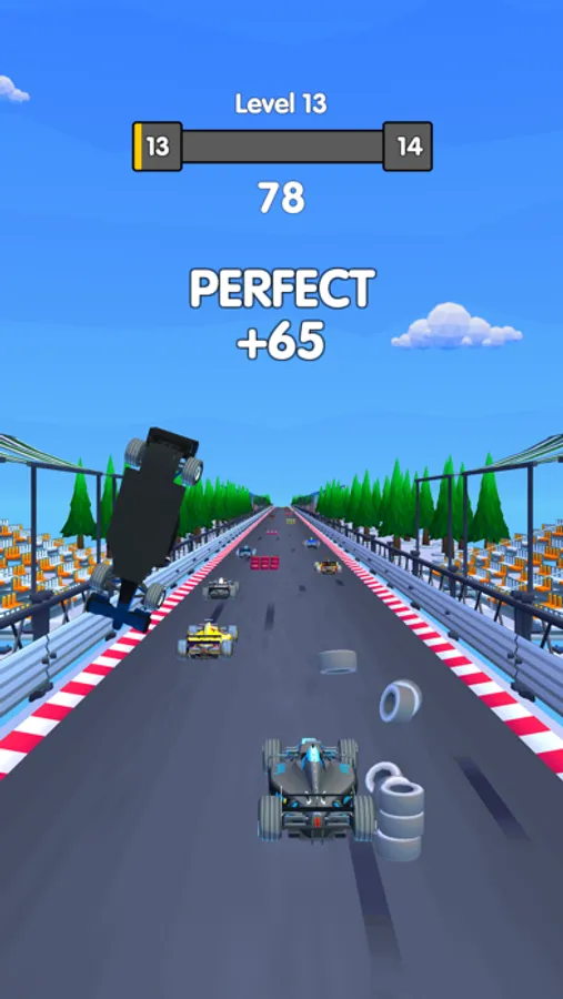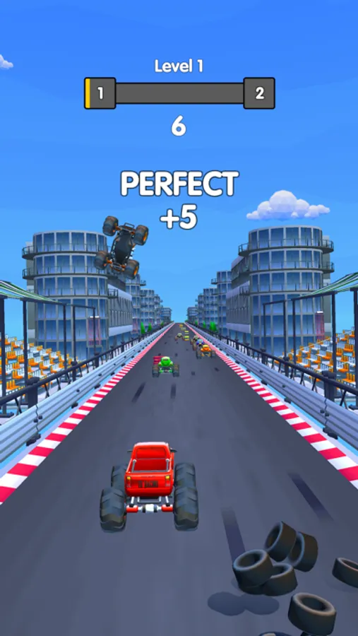 Monster trucks, formula cars and sport cars are in the game. Hit your competitors to make perfects and beat them all. Escape from obstacles and collect all gems to open all cars.