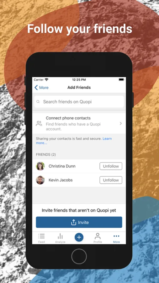 Find friends and share your experiences. Receive feedback to keep pushing further.