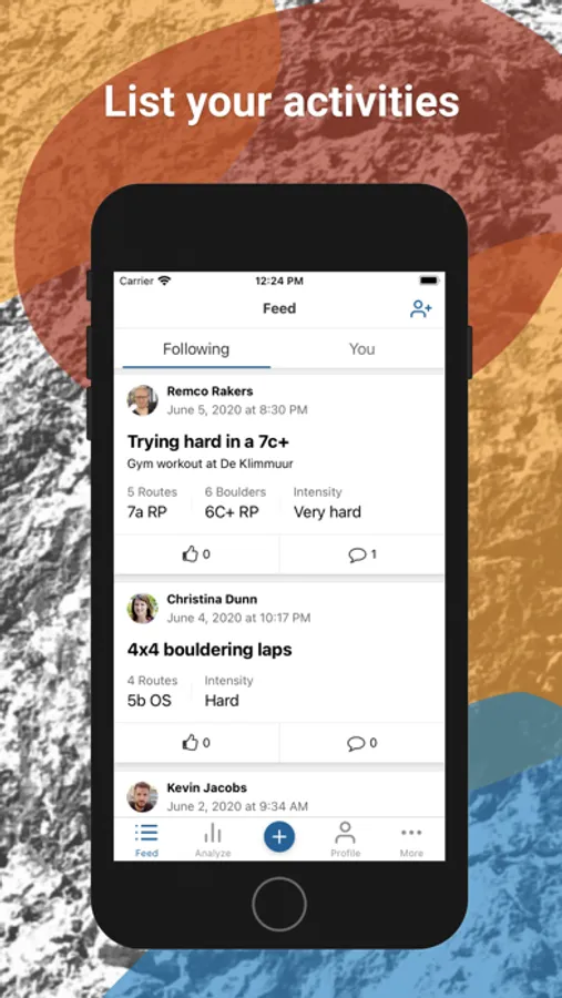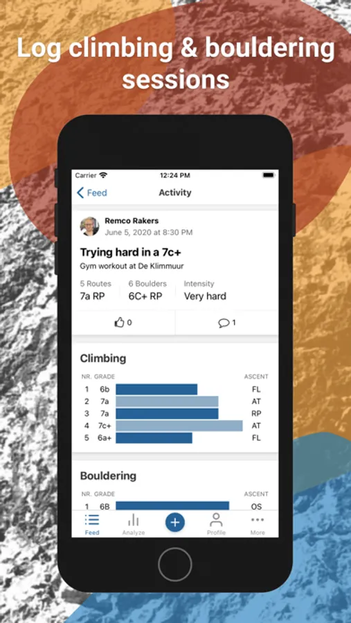 View your own activities and those of your friends. Get inspired by other people’s achievements and get motivated to become a better climber.