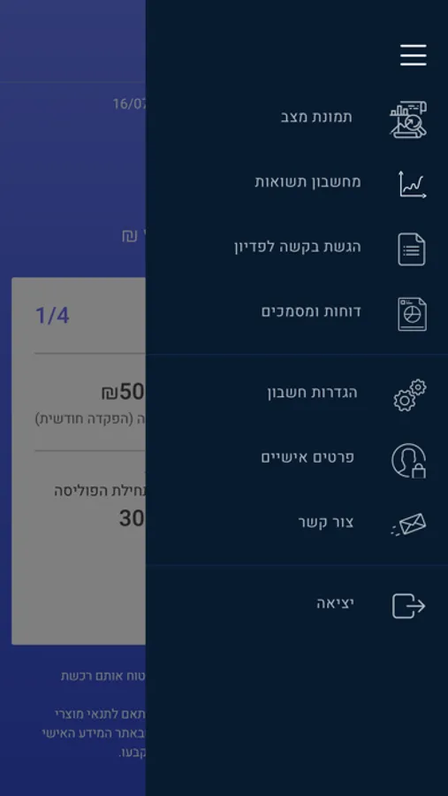 ולשנות את מדיניות ההשקעה בפוליסה באופן אוטומטי ועצמאי לחלוטין, ללא תלות בנציג בכל עת ומכל מקום, כמו כן, ניתן לבצע הפקדות נוספות לפוליסה ולפדות את הכספים בכל עת ללא קנסות .