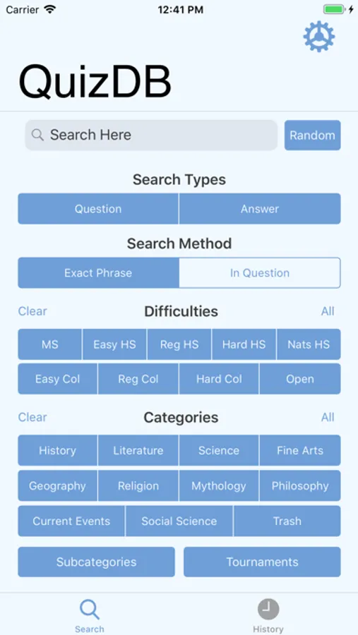 QuizDB Mobile is a fast and easy way to search a large database of quizbowl questions. Features include: