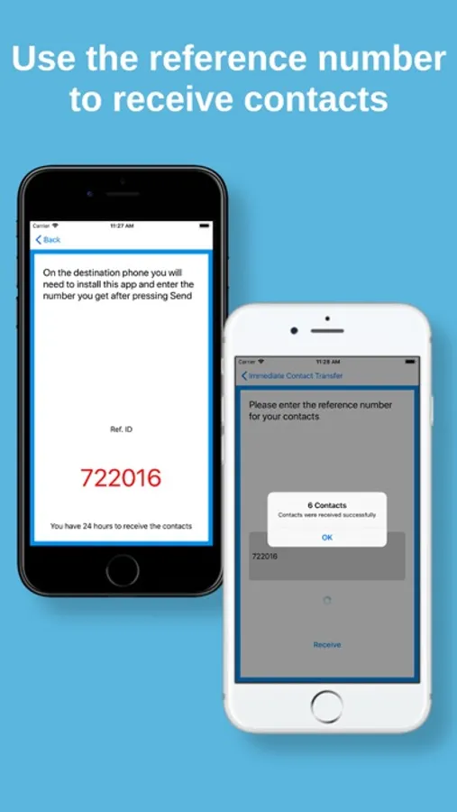 Transfer your contacts in seconds from any phone to any other type of phone , Immediate Contact Transfer provides 2 ways of sending contacts without any signup or cloud accounts: