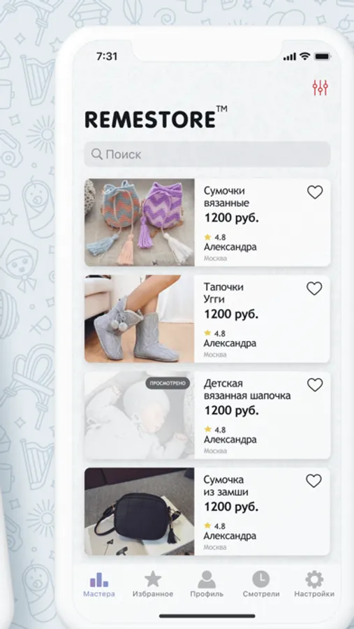 Remestore - мобильное приложение, на базе которого функционирует маркетплейс для хэндмейкеров и ремесленников, а также ценителей товаров ручной работы.