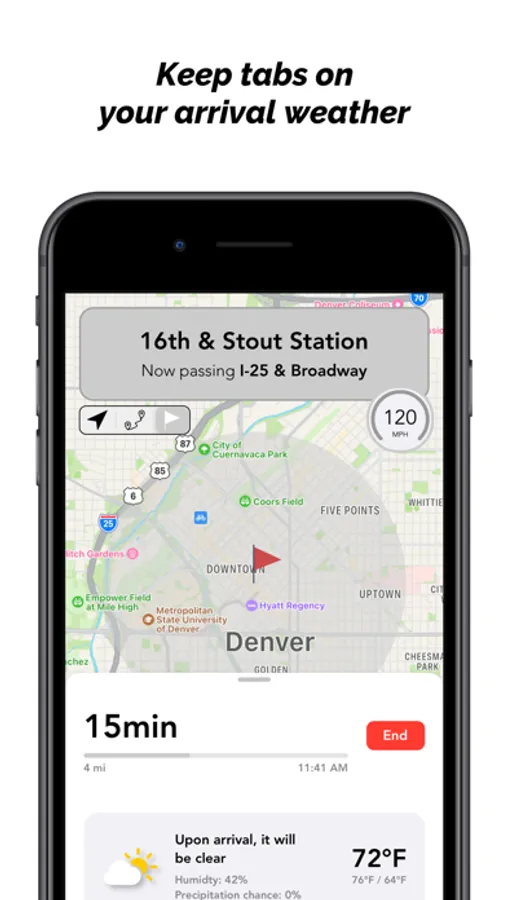 Destinations will tell you where you are currently passing, your arrival time, how long until you’re there, how far away you are, and even your speed!