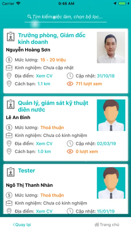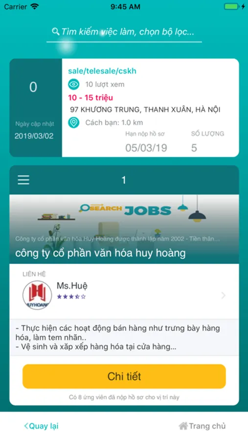 Bạn có nhu cầu tìm việc làm gần bạn? Đến với tiện ích di động Timviec365 thì chắc chắn những việc làm gần bạn nhất sẽ xuất hiện chỉ trong một giây. Không chỉ hỗ trợ tìm việc, chức năng này còn hỗ trợ cho các công ty dễ dàng tìm kiếm ứng viên gần bạn.Nhà tuyển dụng sẽ chủ động hơn trong việc sắp lịch phỏng vấn và tìm ra được người ứng viên ưu tú nhất.