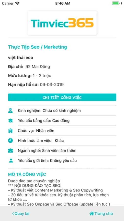Trải nghiệm ngay cơ hội tìm việc nhanh nhất trên thiết bị di động cùng với ứng dụng Timviec365 – hỗ trợ tìm việc làm và tuyển dụngonline. Chỉ cần tải và truy cập vào ứng dụng do các chuyên gia của Timviec365 tạo ra, bạn đã có thể tìm được việc làm nhanh chóng, dễ dàng cập nhật hồ sơ tìm việc với vô số lựa chọn tốt nhất dành cho bạn.