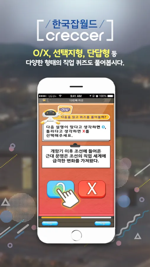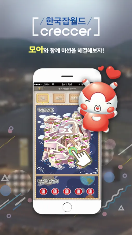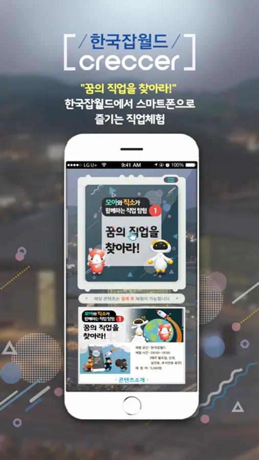 모바일기반인 이 서비스는 콘텐츠별로 다양한 직업을 알아보고 그 직업이 하는 일을 체험하는 방식으로 구성되어 있습니다.