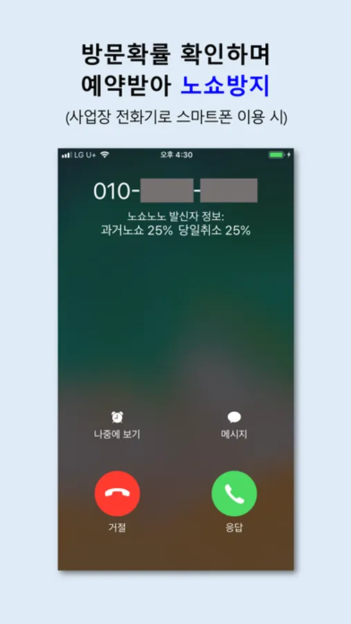 - 노쇼노노 활성화 : 전화 수신시 노쇼 정보 확인 가능