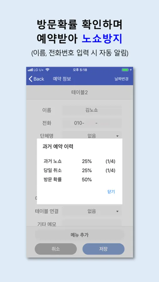고객의 노쇼이력을 알려주는 무료 예약관리 앱!