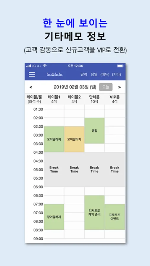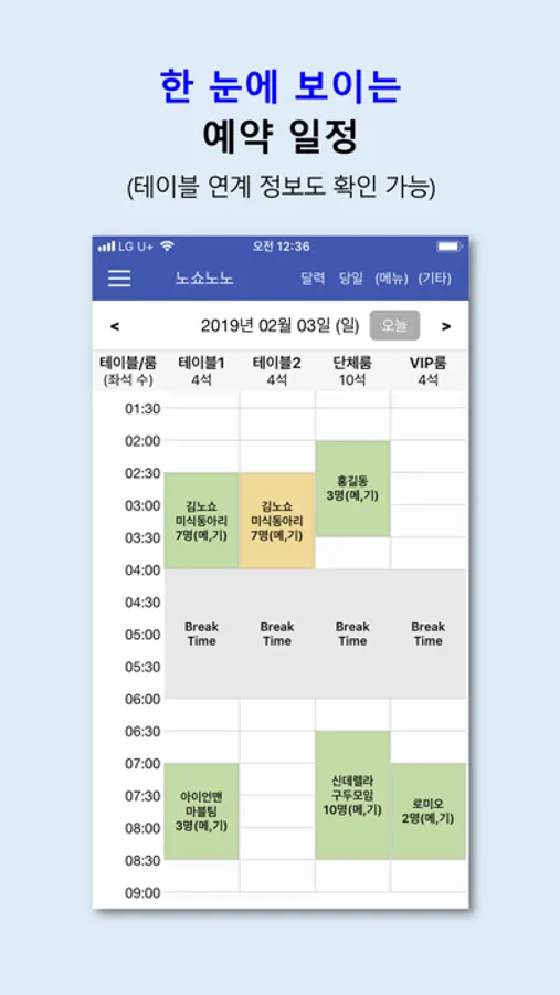 3. 클릭 한 번으로 당일 예약현황과 예약메뉴 확인