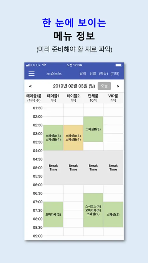 ▷ 한눈에 확인 가능한 예약/메뉴 현황