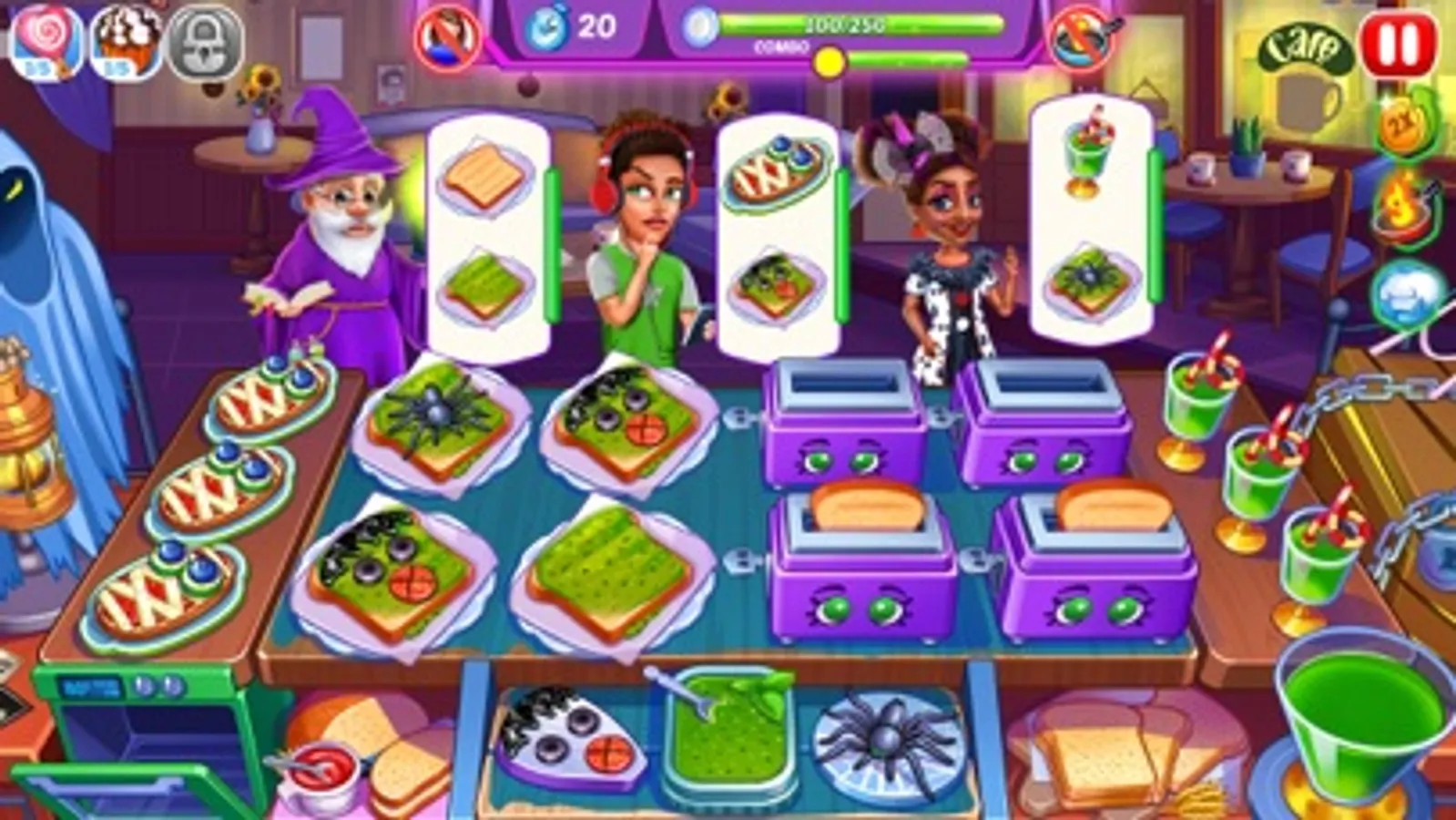 • Try not to overcook the food, use boosters to pass the cooking fever restaurant craze.
