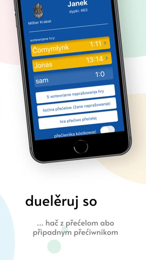 Wotnětka móžeš so tež z twojimi přećelemi a kolegami w duelu měrić.