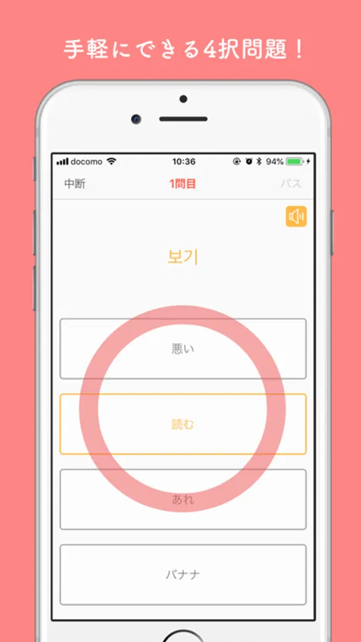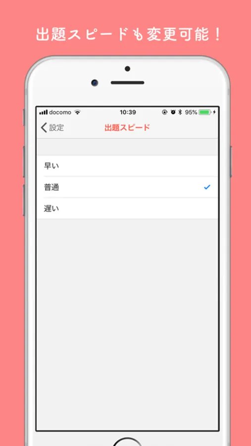 出題スピードを早めたい場合は、出題スピードを「早い」に設定し、さらに音声読み上げ機能をoffにすることで、問題と問題の間隔を最短にできます。