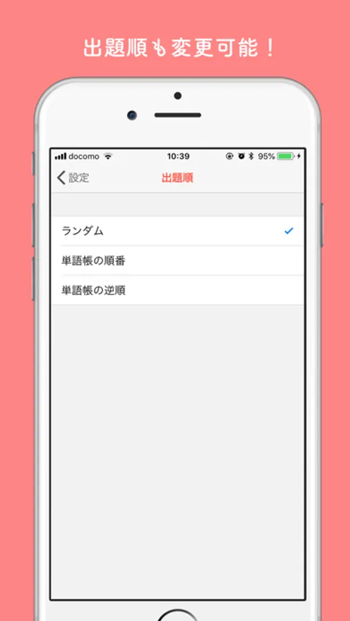 単語帳の順番や、逆順、ランダムなど様々な順番を設定することが可能です。