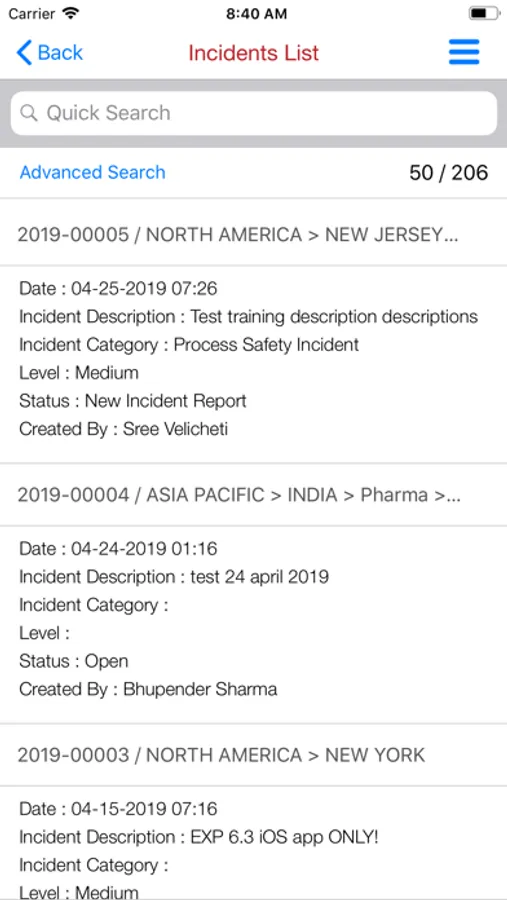Incidents: The EXP Incidents module will allow users to create and track an Incident based off of location, hazard, serious injury, illness and/or dangerous event. The Incident module will also allow users to create and track "Near Miss" Incidents. Users will then be able to create "Near Miss" Incident reports (On EXP Web app) to take precautions or even prevent future Incidents. This module, like all other modules, can be highly configured to our clients requirements and their industry. This module will also allow users to link corrective/preventive actions to the Incident records, so they can be easily tracked within the system.