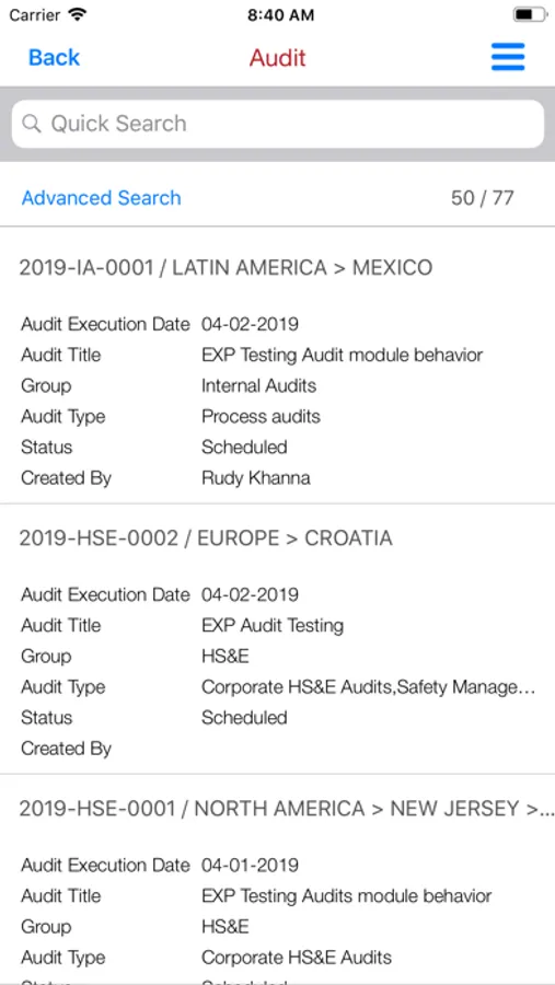 Audits: The EXP Audit module will allow users to create and conduct a Health, Safety and Environmental management Audits. These Audits can help the businesses uncover problems and ensure efficiency. This module, like all other modules, can be highly configured to our clients requirements and their industry. This module will also allow the users to link corrective/preventive actions to the Audit records, so they are easily tracked within the system.