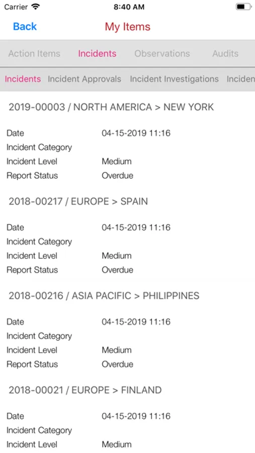 My Items: EXP My Items section will allow users to easily navigate through all the other modules. My Items will allow the user to access Incidents, Observations, Audits and Action Items records that are assigned to the user, created by the user, need the users approval/verification, etc.