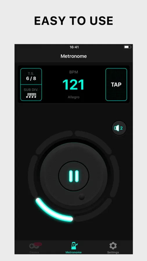 Intuitive to use with a beautiful interface, it offers many ways to personalize your experience. The possibilities are almost infinite: The BPM beats per minute can be set on a wheel, from 30 to 250 beats. It can also be set manually with the Tap BPM feature. Finally, Time Signature and Subdvisions can also be changed to fit your specific needs.