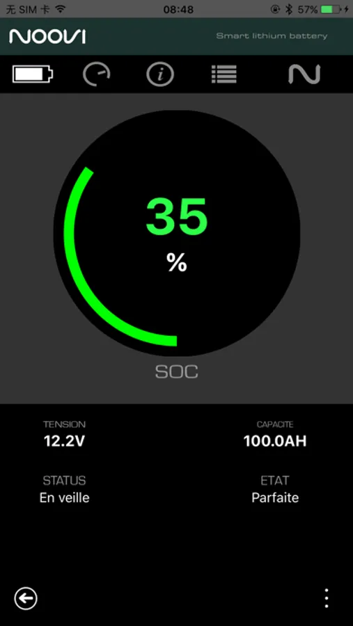 Application optimisée pour contrôler votre batterie Lithium Noovi Smart Controller.