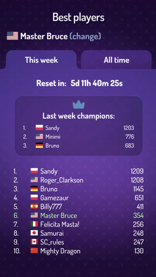 - Weekly tournaments: win the crown every week!