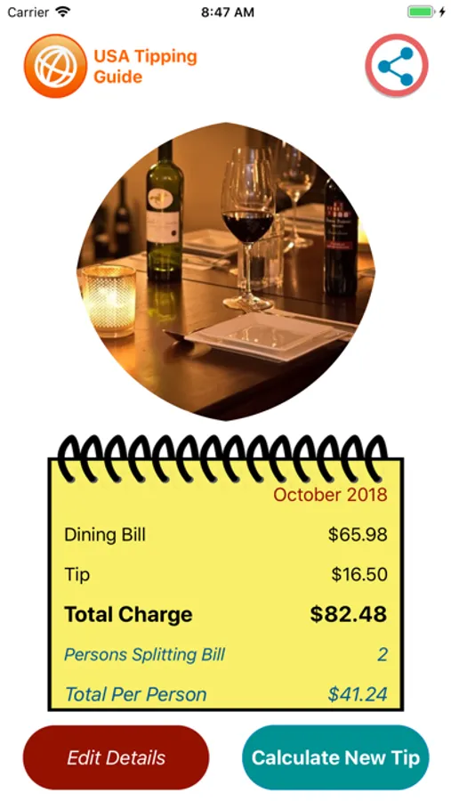 (2) Tip Splitter: Split your tips and total bill amongst your friends and share the final payable amount through social media or your messenger apps
