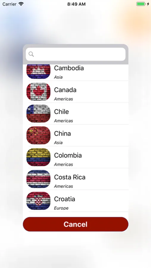 Americas: "Argentina", "Bahamas", "Barbados", "Belize", "Brazil", "Canada", "Chile", "Colombia", "Costa Rica", "Cuba", "Dominican Republic", "Ecuador", "Jamaica", "Mexico", "Panama", "Peru", "Trinidad & Tobago", "USA", "Uruguay".