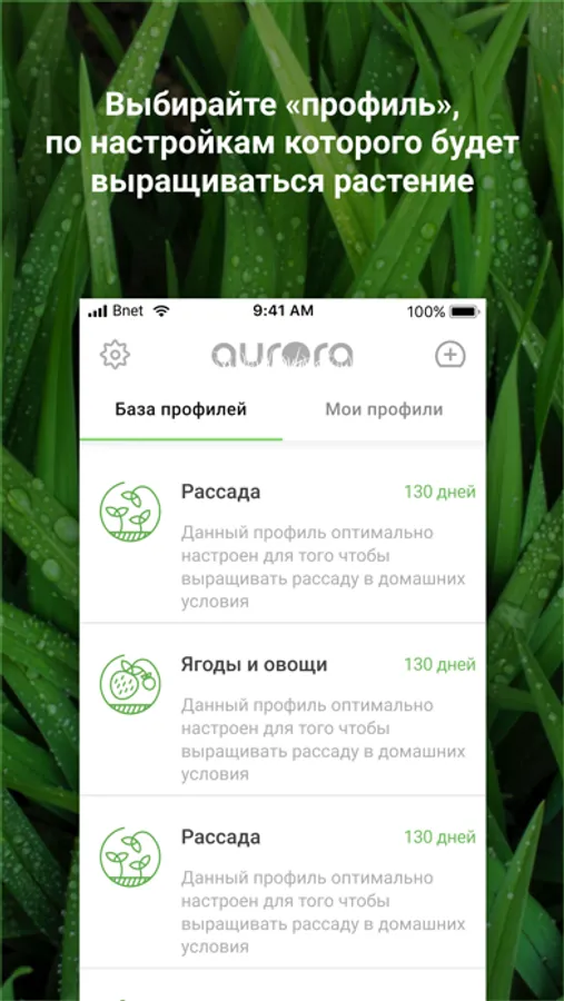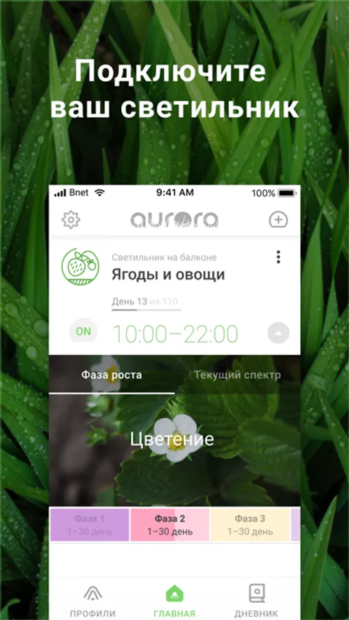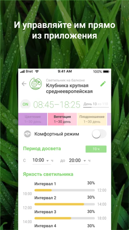 группы светильников, используйте предустановленные профили для выращивания и создавайте свои.