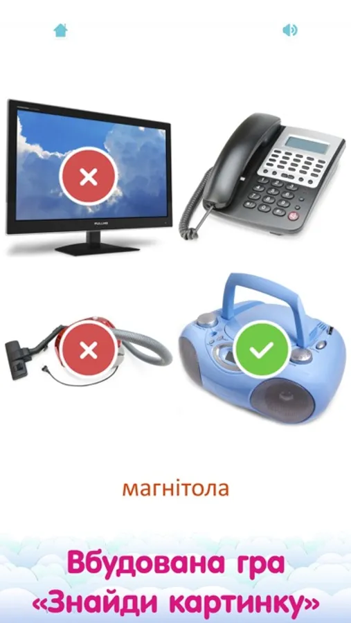 Вбудовані навчальні ігри «Знайди картинку», «Вікторина», «Розмальовки», «Тренування пальчиків» спеціально розроблено для дітей від 0 років. Завдяки спеціальному інтерфейсу ваш малюк легко розбереться з іграми, просто спостерігаючи за тим, що відбувається на екрані.