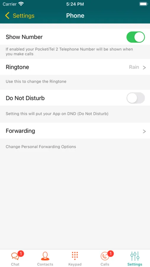 •Incoming calls to the App show the number of the caller, not the PBX.