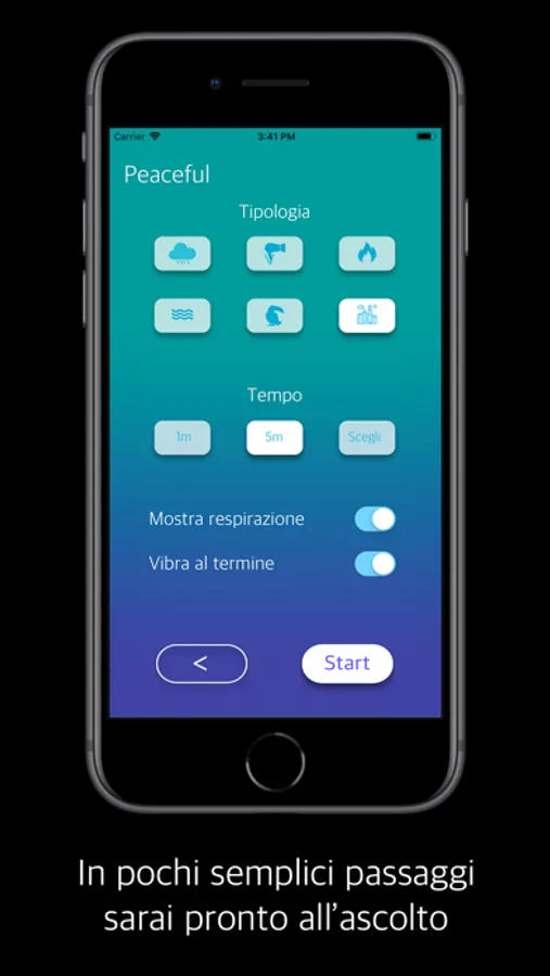 Inclusa anche la funzione di respirazione guidata per un maggior relax, attivabile o disattivatile durante la configurazione.