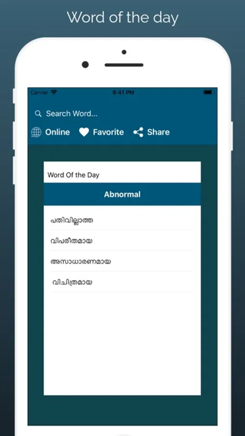 # You can search both English and Malayalam words. You can search words directly from "Internet Browser" or other Applications by using Sharing option