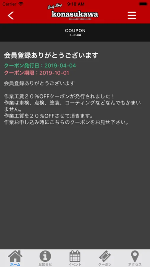 ・お知らせ(点検、車検のお知らせ、予約の回答のお知らせ)