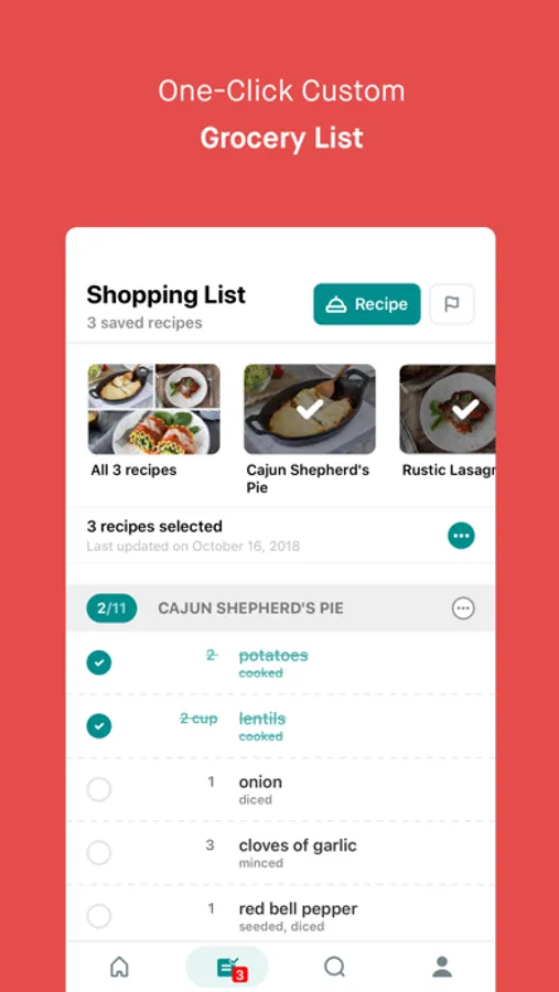 Tick off the items as you shop in the app, or print your list and pop it in your bag. Save money and time while reducing food waste with a grocery list of only the exact ingredients you need for the week.