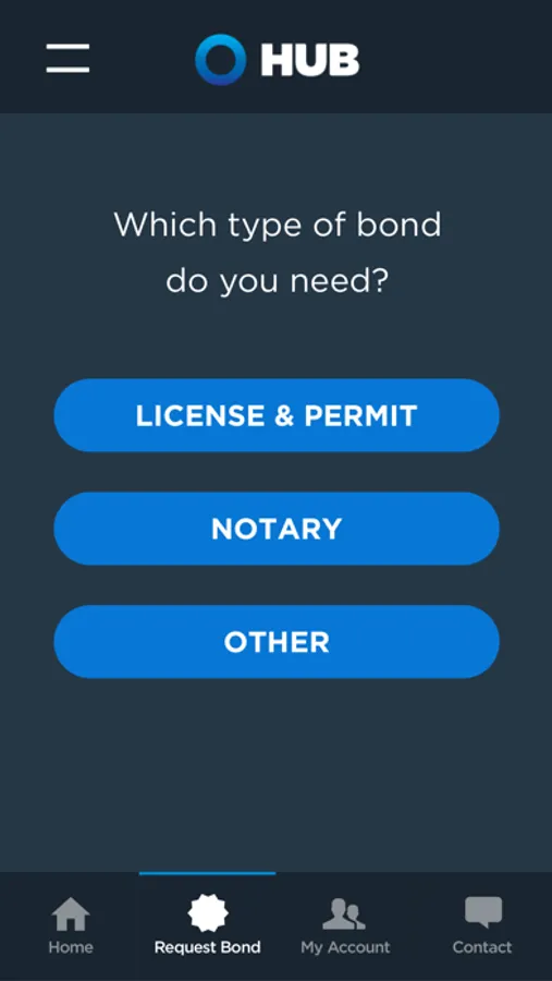 - Submit requests for license and permit bonds, notary bonds and other standard bonds from the app and have a broker process and deliver your certificate.