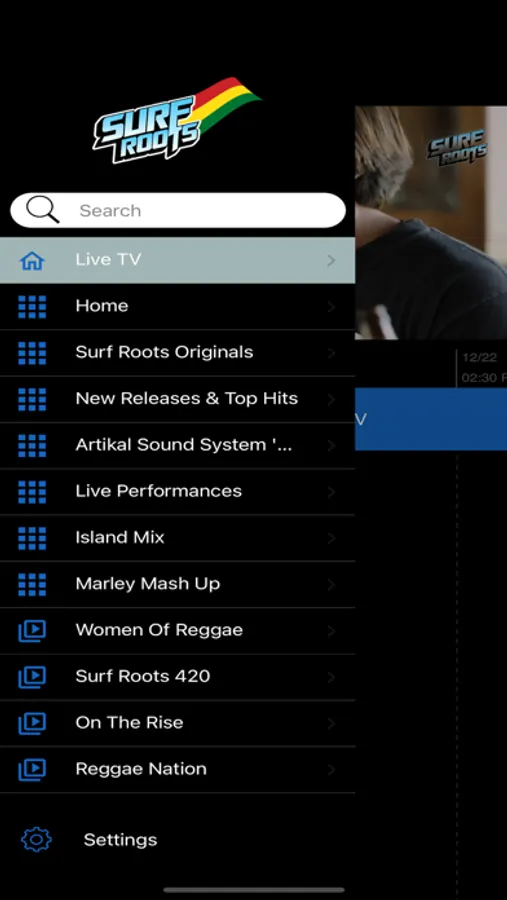 Surf Roots TV is a 24-hour Reggae party! Featuring a mix of music videos, live performances, festivals, interviews and culture, bringing the viewer into the heart of today's hottest music scene! Featuring artists such as Rebelution, Slightly Stoopid, Sublime with Rome, Damian Marley, Ziggy Marley, Chronixx, Protoje, SOJA, Stick Figure, Iration, J Boog, Katchafire, Michael Franti, Steel Pulse, Alborosie, Collie Buddz, Anuhea, Common Kings, Tribal Seeds, Fortunate Youth, 311, Matisyahu, The Green, Hirie & many more! Hosted by Kaleo Wassman of Pepper. It's the first Reggae channel on television!
