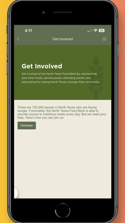 The North Texas Food Bank app is the best way to partner with us to fight hunger! This app has all the tools and information you need to stay connected to the North Texas Food Bank! Some of our app's features include: