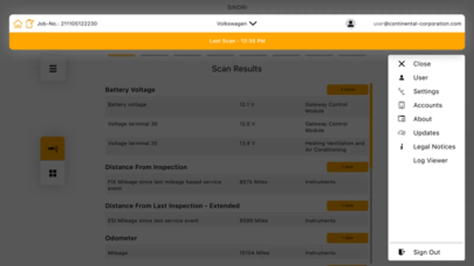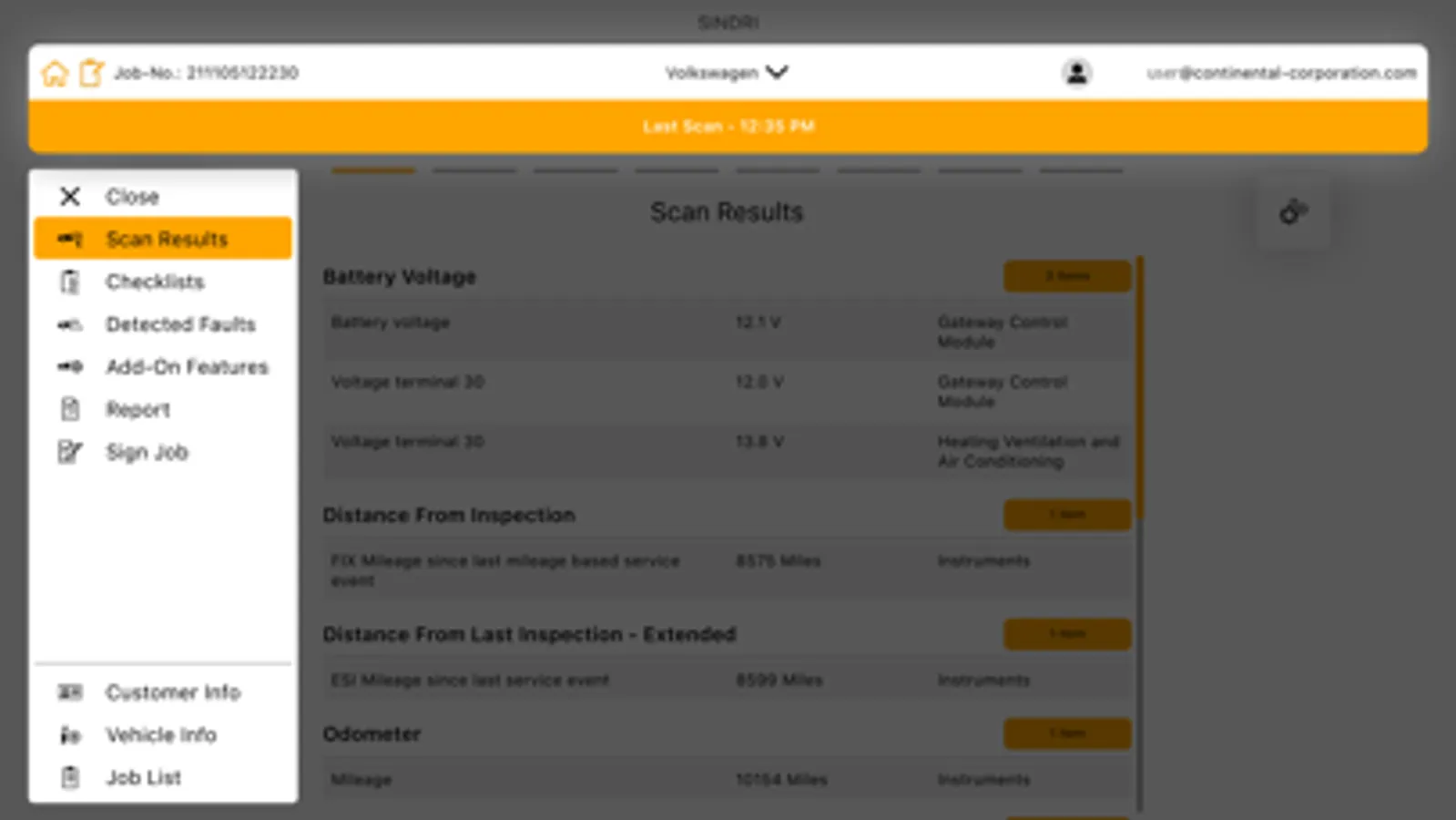SINDRI in conjunction with a DAD-C1 VCI enables you to have a deep scrutiny of vehicles to gather more details of their condition and their servicing needs. Via bluetooth connection the DAD-C1 performs a vehicle scan to read out a predefined set of vehicle data like faults, service needs, battery status and live items that indicate the status of the vehicle. The results of the scan are presented to you in the app. While the scan is running you can also add photos and comments to the report as well as a checklist to document manual inspections by you. After you have finished your job you can send the report as a pdf via mail or upload it to your dealer management system (in case your dealer management system provider does support it)