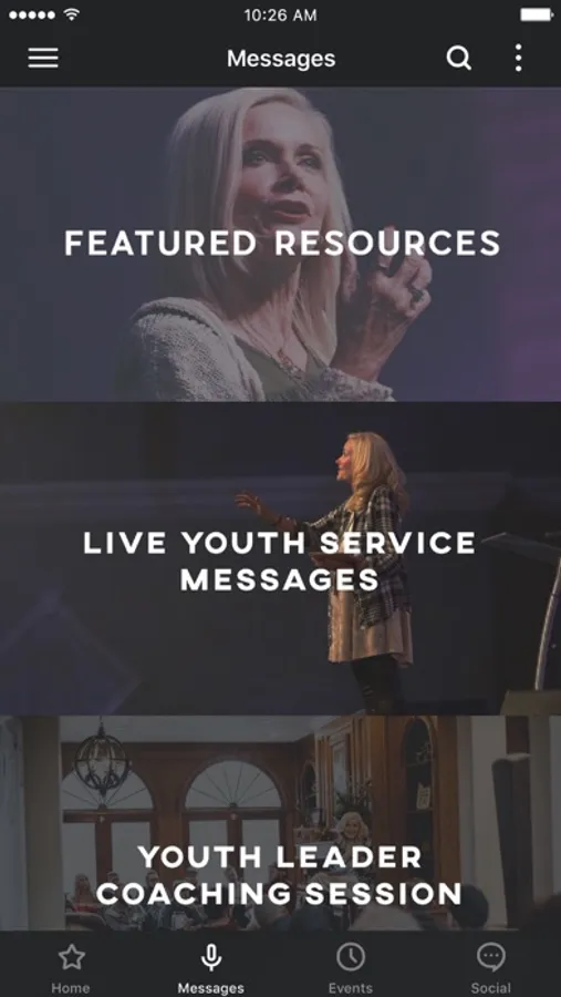 - Audio of live youth services, searchable by topic (complete with message notes, fill-in's, and behind-the-scenes coaching).