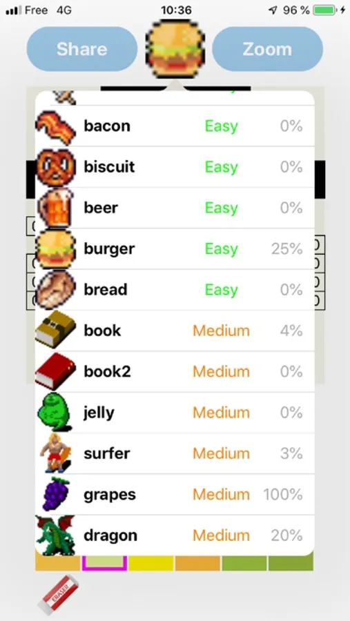 Make some great drawings very easily, just select a model with a touch on the top middle button, and paint it very quickly. You pick up a colour at the bottom of the app, and you press on the corresponding number. Draw each number until all done and enjoy a very cool pixel art by yourself.