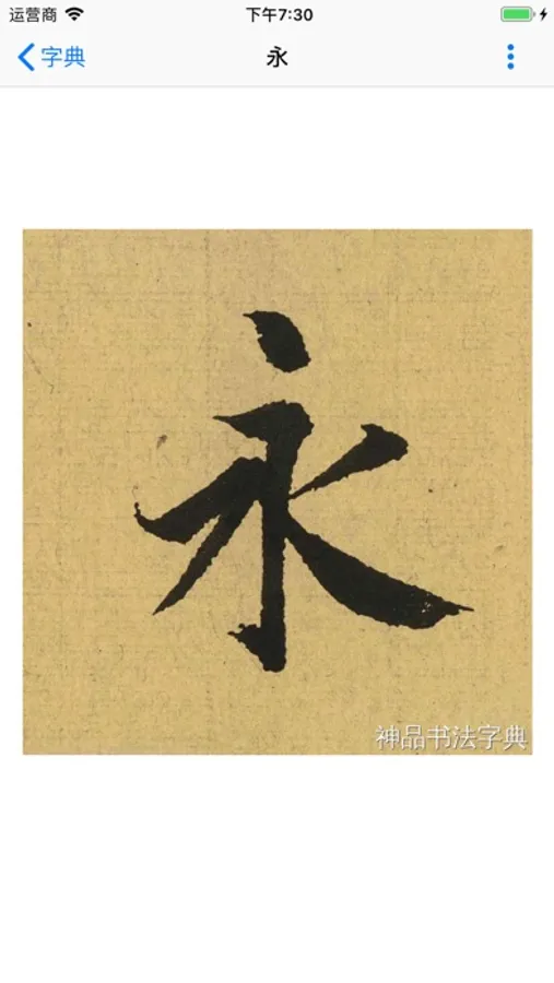 书法字典是一款主打单字字帖字典的软件。书法字典收录了7000+个汉字对应的10W+张高清单字图片,可以根据篆书、隶书、草书、行书、楷书5种字体分类检索。