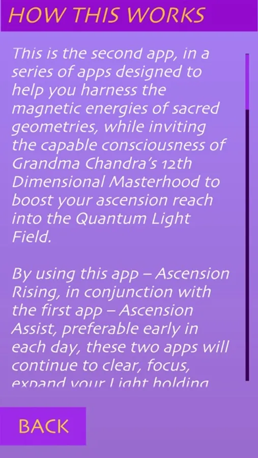 * Use of this app brings in more joy and playfulness into our work and lives as we become more sensitive to the energetic value of these higher energetic frequencies in the flow of creation. We can now know that our original birthright creative capabilities are being restored as we birth ourselves into this new energy.